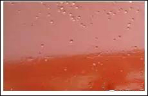 (2)涂膜太薄,流平受阻不能很好展開(kāi),此時(shí)能看到型材基體紋理;涂膜超厚,涂膜表面呈斑紋狀桔皮;