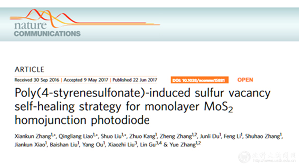 材料科學與工程學院先進微納能源與傳感系統(tǒng)研究團隊首次提出了一種對二維原子晶體材料二硫化鉬(MoS2)表面缺陷進行無損、精確、高效、穩(wěn)定修復的全新策略,相關成果于近日發(fā)表在Nature系列著名學術期刊《自然·通訊(Nature Communications)》。