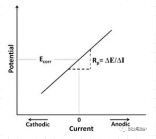 該圖顯示了LPR曲線。 線的斜率表示極化電阻(Rp)。