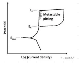 這幅圖顯示了循環(huán)極化曲線,用于評估點蝕腐蝕。可以看出更小的ER和更大的亞穩(wěn)態(tài)點蝕環(huán)更易受到點蝕的影響。