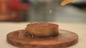 研究人員則設(shè)計(jì)出了自己的版本——超疏水表面。通常,這些表面由微尺度或者納米尺度的尖刺構(gòu)成。尖刺能驅(qū)趕落在表面上的液滴,甚至能導(dǎo)致微小的液滴從表面上彈跳下來。不過,這種方法并不總是奏效。如果水蒸氣在凝結(jié)時(shí)進(jìn)入尖刺之間,尖刺便會(huì)將液滴夾住。