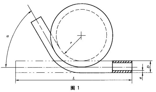 將一根全截面的金屬直管繞著一個(gè)規(guī)定半徑和帶槽的彎心彎曲,直至彎曲角度達(dá)到相關(guān)產(chǎn)品標(biāo)準(zhǔn)所規(guī)定的值(見圖1)